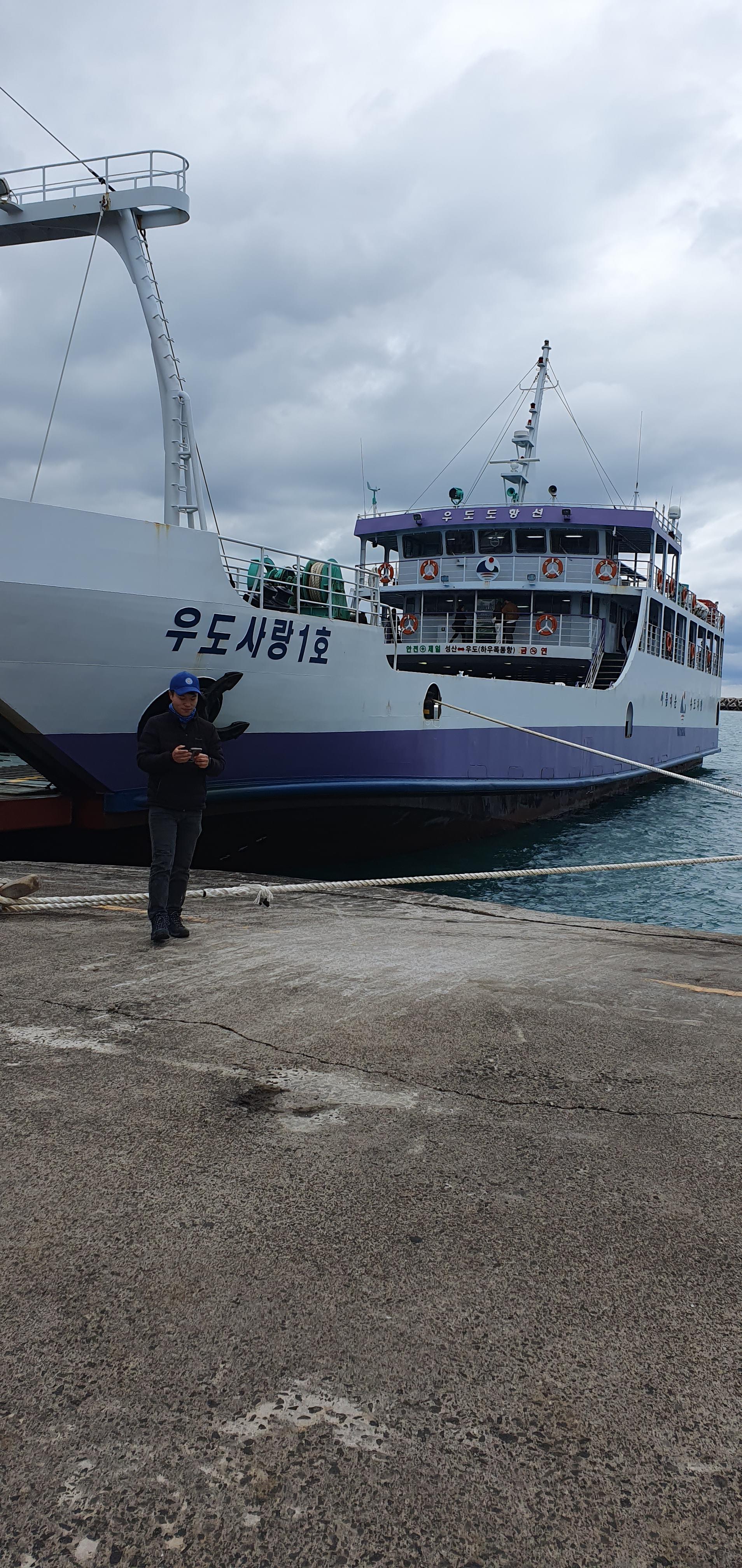 20코스 종점을 찍고 나서 날씨가 좋길래 성산항에 전화해 보니 정상적으로 운항한다고 한다. 그래서 해녀박물관에서 12:17분에 버스 타고 성산항으로 달려갔다. 배가 고팠지만 시간이 없으니까, 성산항이나 우도에 가서 먹으면 되겠지 하면서 배표를 샀는데 곧바로 배가 출항해서 먹을 새가 없었다. 우도에 도착하니 또 마음이 급해져서 곧바로 출발 스탬프 찍고 부지런히 코스를 돈다.