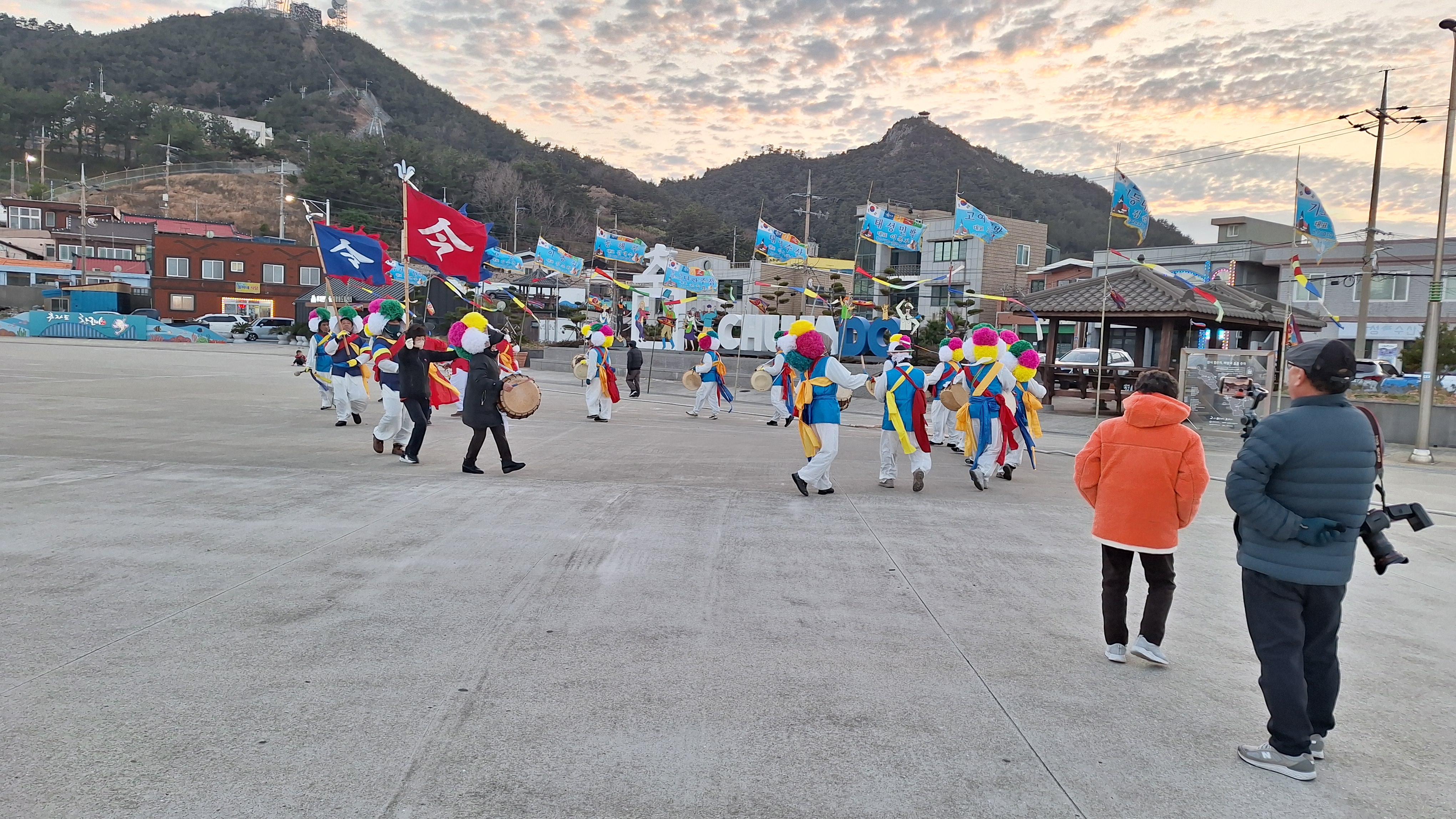 때마침 보름날이다. 추자도 문화광장에 풍물이 울린다. 이곳 풍물은 '징'이 주인가 보다. 웃다리는 꽹과리가 주 악기고, 전라도는 장구, 경상도는 북, 제주도는 징인가?