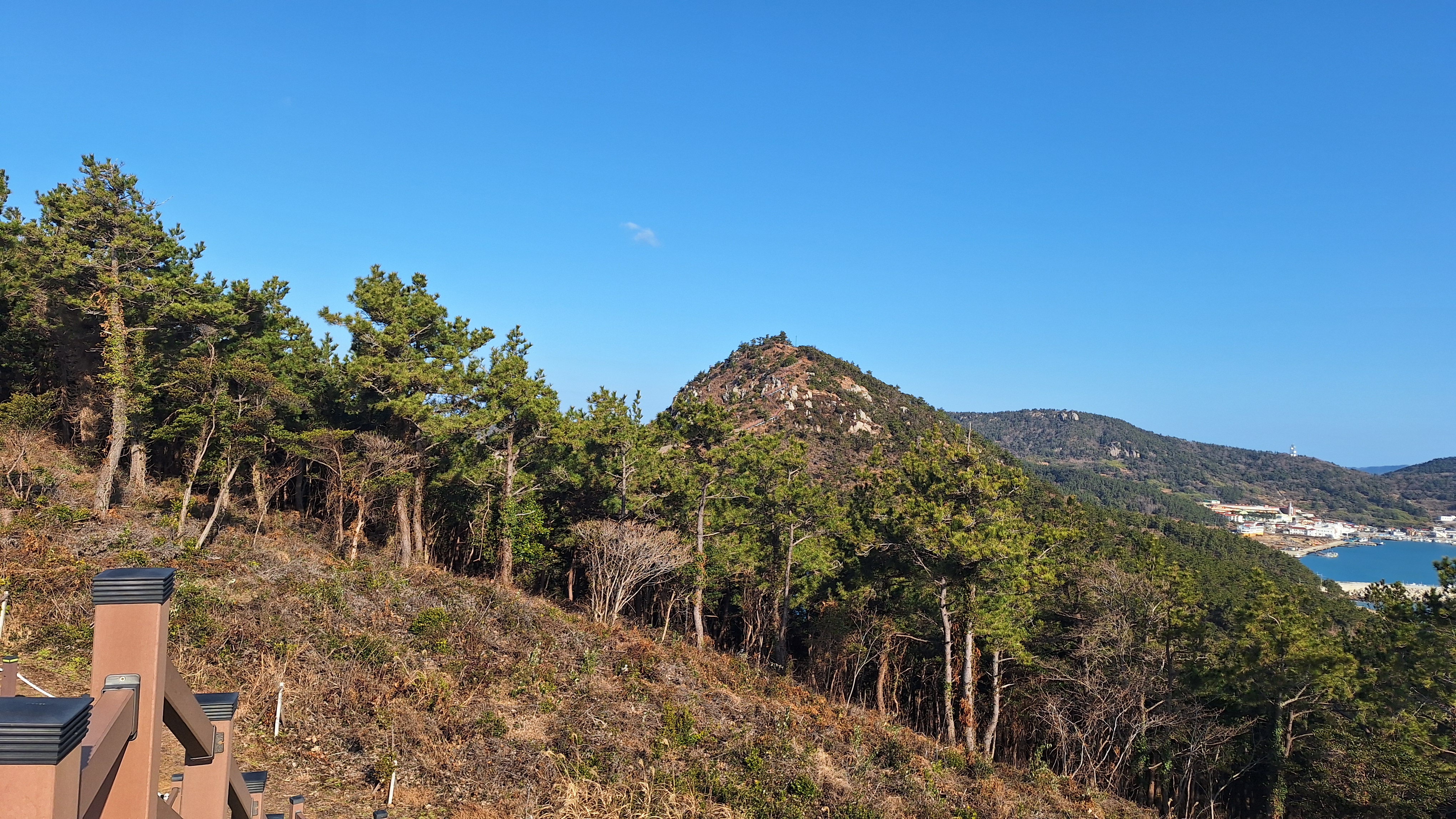 상추자도에서 마을버스를 타고 다시 신양항으로 와서 출발. 오늘은 날씨가 좋다. 바람도 안 불고 하늘은 쾌청하다. 그러나 제주도를 한 바퀴 돌면서 절경을 많이 보아서 그런지 딱히 좋은 건 모르겠다. 그저 올레 다른 코스보다 산을 넘어가는 코스가 많다는 것 정도? 날이 더워서 안에 입었던 점퍼는 벗어서 배낭에 넣고 걸었다.