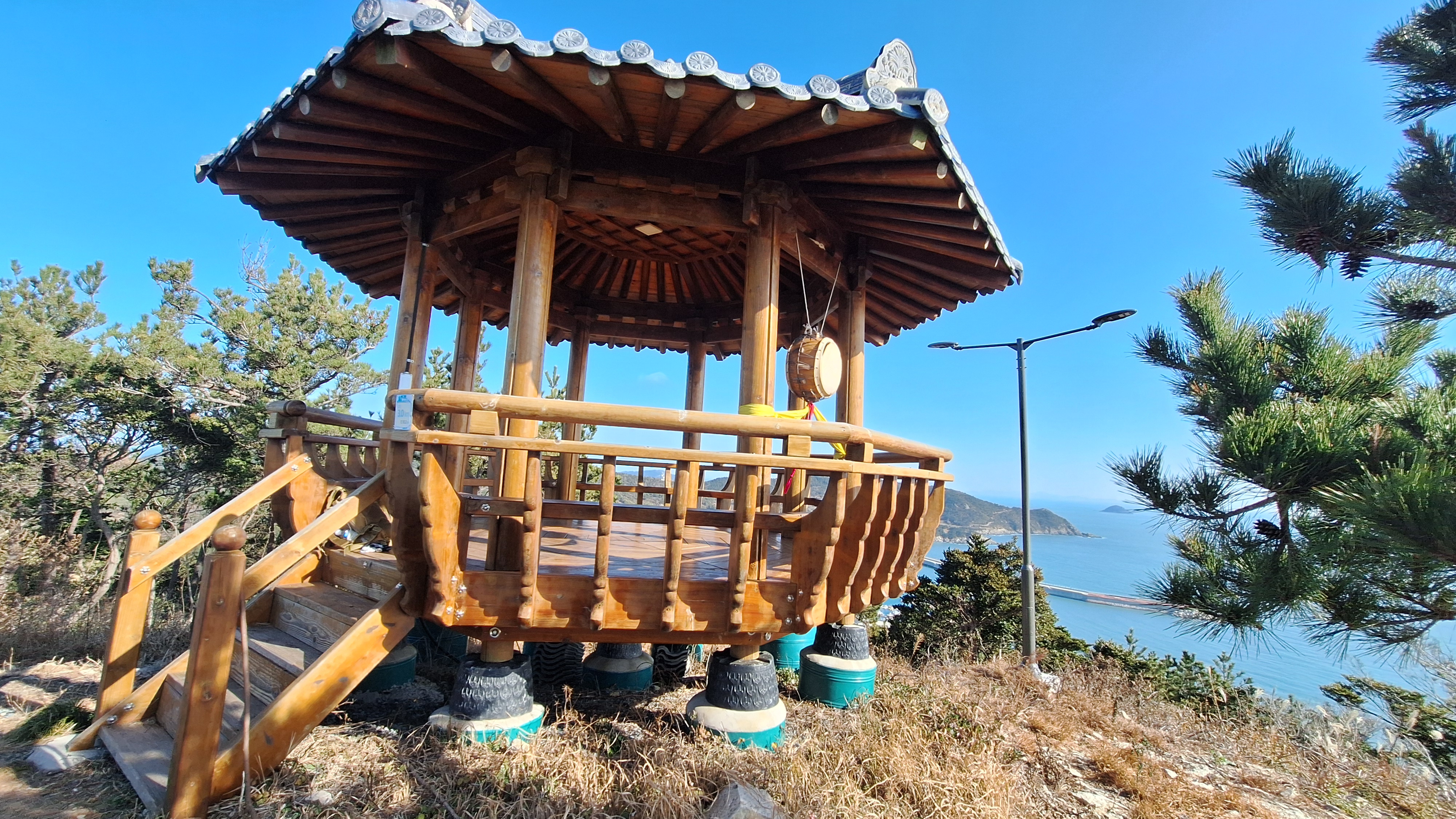 정자에 매달려있는 저 북은 안개가 짙게 껴서 등댓불이 잘 보이지 않을 때 배들에게 위치를 알려는 역할을 했다고 한다.
